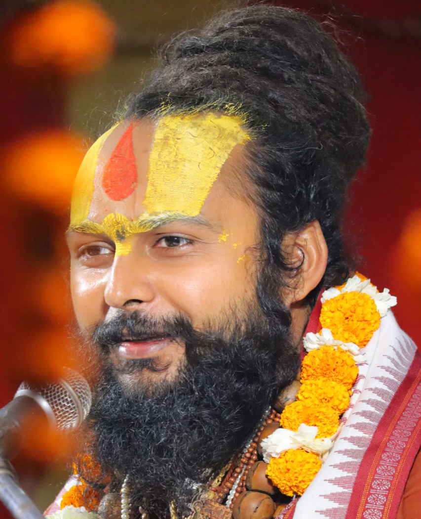 Acharya Shri Ramanand Das Ji Maharaj, Shree Ram Kunj Katha Mandap in Ayodhya (Ramghat, UP), is a prominent spiritual leader known for narrating Shrimad Bhagwat Katha and spreading the teachings of Lord Rama. He is revered as a dedicated scholar of the Ramanandi Sampradaya, conducting spiritual discourses (Katha) to guide devotees on the path of bhakti